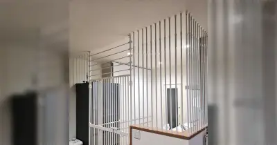 「台所に興味を持つ猫対策の柵が完成した!」どう見ても人間用ケージなのだが、猫のいる暮らし(現実)としてわかりみが深い