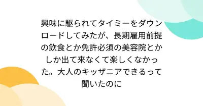 興味に駆られてタイミーをダウンロードしてみたが、長期雇用前提の飲食とか免許必須の美容院とかしか出て来なくて楽しくなかった。大人のキッザニアできるって聞いたのに