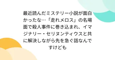 最近読んだミステリー小説が面白かったな…「走れメロス」の名場面で殺人事件に巻き込まれ、イマジナリー・セリヌンティウスと共に解決しながら先を急ぐ話なんですけども