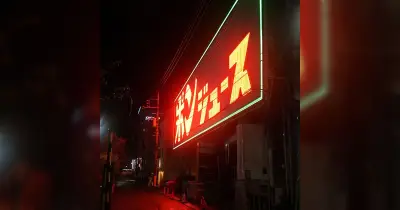 羽田空港モノレール沿いにある、サイバーパンクな巨大ネオン…真下のアスファルトが赤く染められシネマティックだった「昭和から続く存在感」