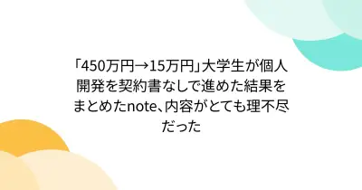 「450万円→15万円」大学生が個人開発を契約書なしで進めた結果をまとめたnote、内容がとても理不尽だった