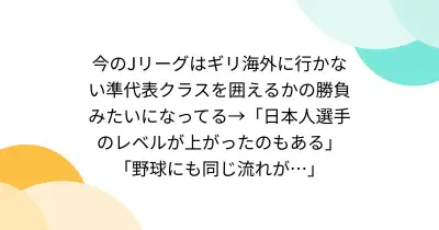 今のJリーグはギリ海外に行かない準代表クラスを囲えるかの勝負みたいになってる→「日本人選手のレベルが上がったのもある」「野球にも同じ流れが…」