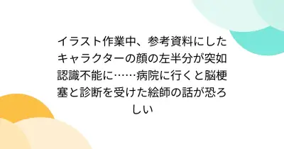 イラスト作業中、参考資料にしたキャラクターの顔の左半分が突如認識不能に……病院に行くと脳梗塞と診断を受けた絵師の話が恐ろしい