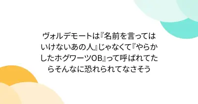 ヴォルデモートは『名前を言ってはいけないあの人』じゃなくて『やらかしたホグワーツOB』って呼ばれてたらそんなに恐れられてなさそう