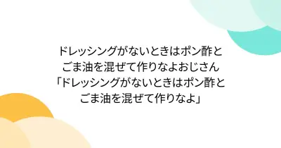 ドレッシングがないときはポン酢とごま油を混ぜて作りなよおじさん「ドレッシングがないときはポン酢とごま油を混ぜて作りなよ」