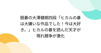 囲碁の大澤健朗四段「ヒカルの碁は大嫌いな作品でした!今は大好き。」ヒカルの碁を読んだ天才が現れ競争が激化
