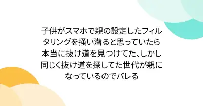 子供がスマホで親の設定したフィルタリングを掻い潜ると思っていたら本当に抜け道を見つけてた、しかし同じく抜け道を探してた世代が親になっているのでバレる