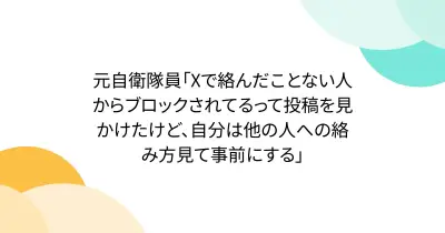 元自衛隊員「Xで絡んだことない人からブロックされてるって投稿を見かけたけど、自分は他の人への絡み方見て事前にする」