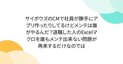 サイボウズのCMで社員が勝手にアプリ作ったりしてるけどメンテは誰がやるんだ?退職した人のExcelマクロを誰もメンテ出来ない問題が再来するだけなのでは
