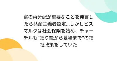 富の再分配が重要なことを発言したら共産主義者認定...しかしビスマルクは社会保険を始め、チャーチルも"揺り籠から墓場まで"の福祉政策をしていた