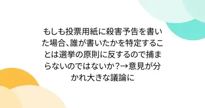 もしも投票用紙に殺害予告を書いた場合、誰が書いたかを特定することは選挙の原則に反するので捕まらないのではないか?→意見が分かれ大きな議論に