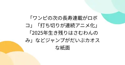 「ワンピの次の長寿連載がロボコ」「打ち切りが連続アニメ化」「2025年生き残りはさむわんのみ」などジャンプがだいぶカオスな紙面