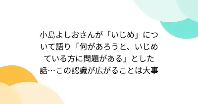 小島よしおさんが「いじめ」について語り「何があろうと、いじめている方に問題がある」とした話…この認識が広がることは大事
