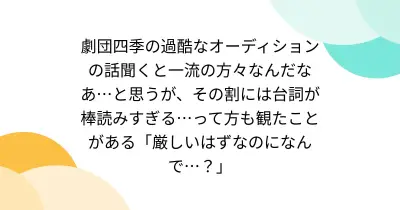 劇団四季の過酷なオーディションの話聞くと一流の方々なんだなあ…と思うが、その割には台詞が棒読みすぎる…って方も観たことがある「厳しいはずなのになんで…?」