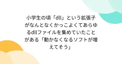 小学生の頃「dll」という拡張子がなんとなくかっこよくてあらゆるdllファイルを集めていたことがある「動かなくなるソフトが増えてそう」