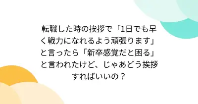 転職した時の挨拶で「1日でも早く戦力になれるよう頑張ります」と言ったら「新卒感覚だと困る」と言われたけど、じゃあどう挨拶すればいいの?