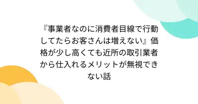 『事業者なのに消費者目線で行動してたらお客さんは増えない』価格が少し高くても近所の取引業者から仕入れるメリットが無視できない話