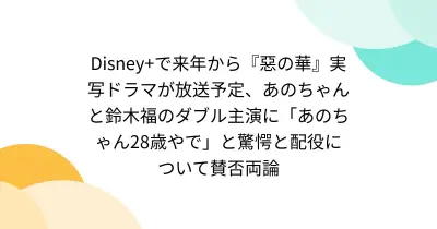 Disney+で来年から『惡の華』実写ドラマが放送予定、あのちゃんと鈴木福のダブル主演に「あのちゃん28歳やで」と驚愕と配役について賛否両論