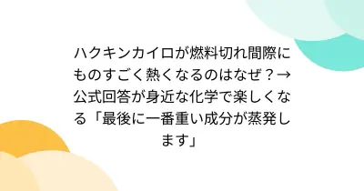 ハクキンカイロが燃料切れ間際にものすごく熱くなるのはなぜ?→公式回答が身近な化学で楽しくなる「最後に一番重い成分が蒸発します」