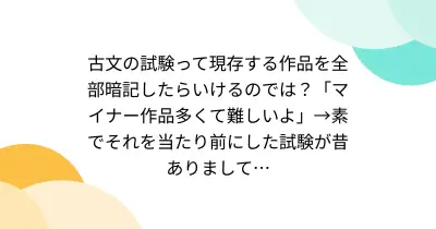 古文の試験って現存する作品を全部暗記したらいけるのでは?「マイナー作品多くて難しいよ」→素でそれを当たり前にした試験が昔ありまして…