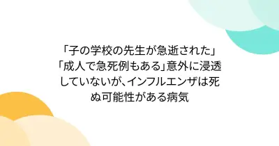 「子の学校の先生が急逝された」「成人で急死例もある」意外に浸透していないが、インフルエンザは死ぬ可能性がある病気