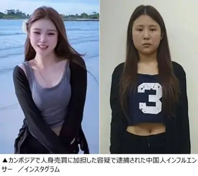 写真右がカンボジアの人身売買組織メンバー、 左が行方不明になった中国人インフルエンサー(26)