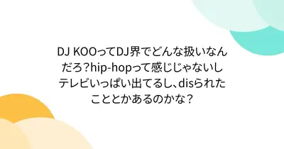DJ KOOってDJ界でどんな扱いなんだろ?hip-hopって感じじゃないしテレビいっぱい出てるし、disられたこととかあるのかな?