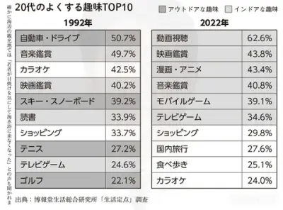 【悲報】「20代の趣味」、30年間でめちゃくちゃ変わるwwwwwwwwwwwwwwww