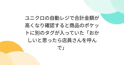 ユニクロの自動レジで合計金額が高くなり確認すると商品のポケットに別のタグが入っていた「おかしいと思ったら店員さんを呼んで」