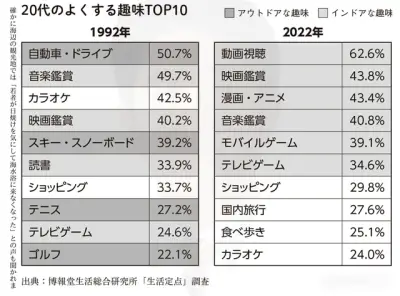 【悲報】「20代の趣味」、30年間でめちゃくちゃ変わるwwwwwww