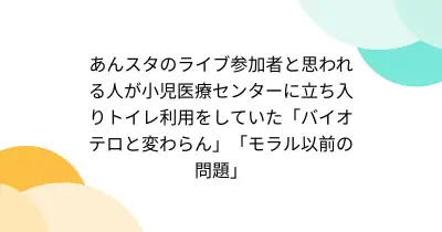 あんスタのライブ参加者と思われる人が小児医療センターに立ち入りトイレ利用をしていた「バイオテロと変わらん」「モラル以前の問題」