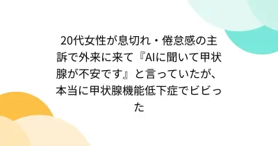 20代女性が息切れ・倦怠感の主訴で外来に来て『AIに聞いて甲状腺が不安です』と言っていたが、本当に甲状腺機能低下症でビビった