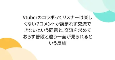 Vtuberのコラボってリスナーは楽しくない?コメントが読まれず交流できないという同意と、交流を求めておらず普段と違う一面が見られるという反論