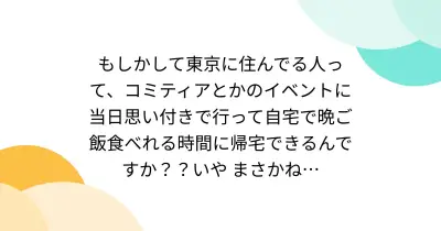 もしかして東京に住んでる人って、コミティアとかのイベントに当日思い付きで行って自宅で晩ご飯食べれる時間に帰宅できるんですか??いや まさかね…