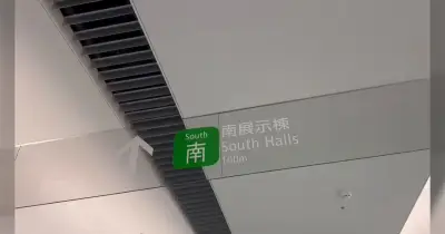 ビックサイト南館の天井に取り付けられた看板、いつみても不思議なんだよな「先入観を利用してるってわけか」