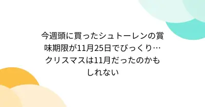 今週頭に買ったシュトーレンの賞味期限が11月25日でびっくり…クリスマスは11月だったのかもしれない