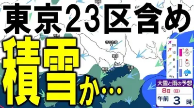 7日昼前〜8日にかけて23区を含め積雪か、7〜8日までと8〜9日ともに東京23区で1cmの降雪予想