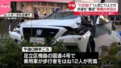 【東京】乗用車が歩行者をはね11人ケガ、うち2人重体 現場に残されたセダンの運転手が衝突後に逃走…ひき逃げ事件として捜査 足立