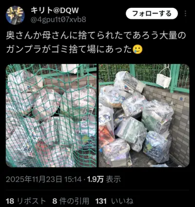【悲報】お母さん、息子の集めたガンプラを全てゴミ捨て場に断捨離してしまうwwwwwww