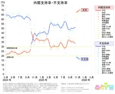 ロケットスタートの高市内閣、実家がイオンの岡田克也さんとこっそり修正で言い訳の朝日新聞に苦しめられるも発足1ヶ月で更に支持率を伸ばす