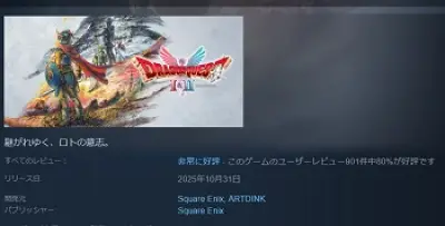 【朗報】ドラゴンクエスト1&2、Steam評価が非常に好評まで持ち直す