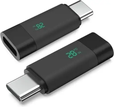 CメスCオスで小さい7セグLEDで電力とPDモードかどうか検出するアダプタ買ったけど結構便利やな