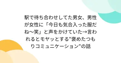 駅で待ち合わせしてた男女、男性が女性に「今日も気合入った服だね~笑」と声をかけていた→言われるとモヤッとする"褒めたつもりコミュニケーション"の話