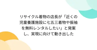 リサイクル着物の店長が「近くの児童養護施設に七五三着物や振袖を無料レンタルしたい」と発案し、実現に向けて動き出した