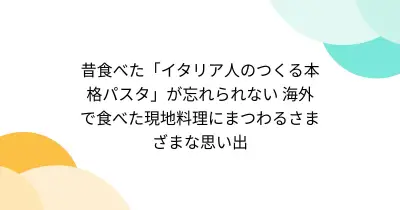昔食べた「イタリア人のつくる本格パスタ」が忘れられない 海外で食べた現地料理にまつわるさまざまな思い出
