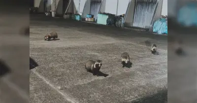 漁港に着いたらタヌキ達にお迎えされた「自分ネコなのでって思いながら歩いてそう」