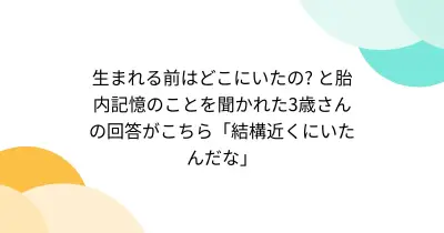 生まれる前はどこにいたの? と胎内記憶のことを聞かれた3歳さんの回答がこちら「結構近くにいたんだな」