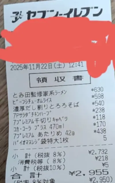 【悲報】コンビニでの1日分の食費、3000円wwwww