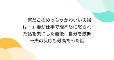 「何だこのめっちゃかわいい夫婦は…」妻が仕事で理不尽に怒られた話を夫にした最後、自分を鼓舞→夫の反応も最高だった話