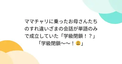 ママチャリに乗ったお母さんたちのすれ違いざまの会話が単語のみで成立していた「学級閉鎖!?」「学級閉鎖〜〜!😩」
